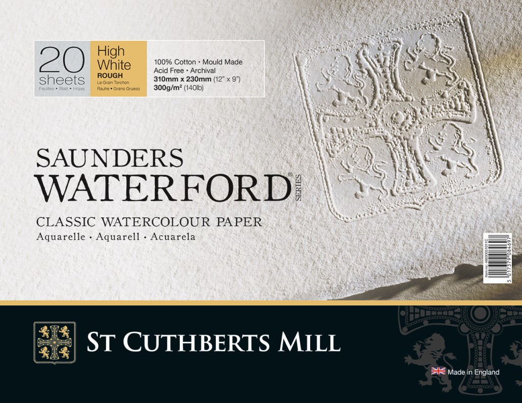 Saunders Waterford Block, 20 Blatt, rundum geleimt, 31 x 23 cm extra weiß, rau,