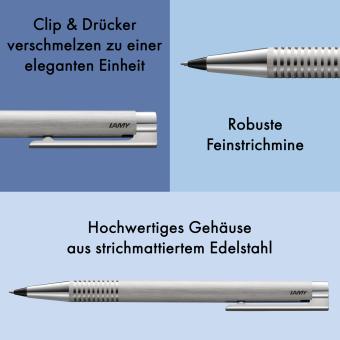 Edelstahl strichmattiert / Metallbeschläge; verchromt / Feinstrichmine M 40 (0,7)