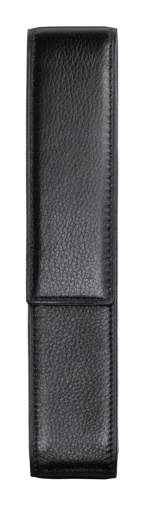 Das Lamy Etui gefertigt mit schwarzem Leder, Magnetverschluß und einer glatten oder quer geriffelter Oberfläche auf der Schliesse.