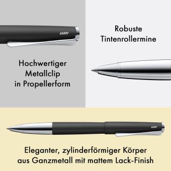 Mit Kappe / Lack-Finish mattschwarz / Metallclip in Propellerform / mit Tintenrollermine LAMY M 63 M schwarz