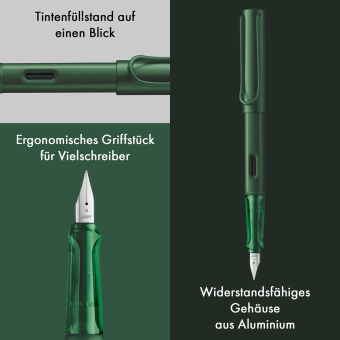 Aluminium grün eloxiert / Metallclip / ergonomisches Griffstück aus Kunststoff / Stahlfeder, poliert /
