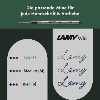 Aluminium grün eloxiert / Metallclip / ergonomisches Griffstück aus Kunststoff / mit Großraummine LAMY M 16 M schwarz M /Modell 2B9