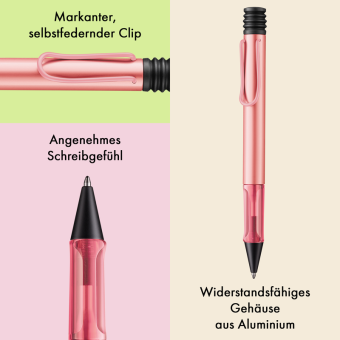 Aluminium rosa eloxiert / Metallclip / ergonomisches Griffstück aus Kunststoff / mit Großraummine LAMY M 16 M schwarz M / Modell 2C0