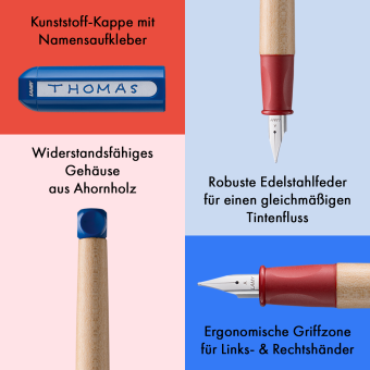 Der Schreiblernfüller LAMY abc wurde gemeinsam mit Pädagogen für die ersten Schritte des Schreibenlernens entwickelt. Die kindgerechte Gestaltung und das ergonomisch geformte Griffstück unterstützen die natürliche, unverkrampfte Haltung der Finger.