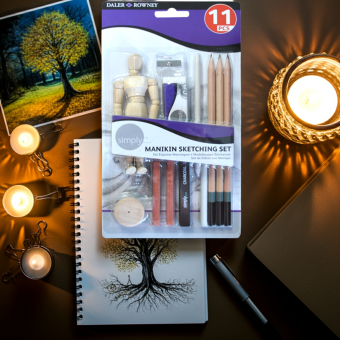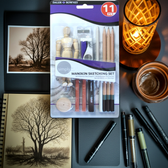 Dieses 11-teilige Set enthält einen Auswahl grundlegender Skizzen- und Zeichenmaterialien, die jeder Künstler benötigt. Die enthaltene Gliederpuppe ist ein nützliches Werkzeug, um das Zeichnen der menschlichen Figur zu erlernen.