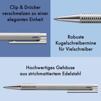 Edelstahl strichmattiert / Metallbeschläge: verchromt / mit Großraummine LAMY M 16 M schwarz